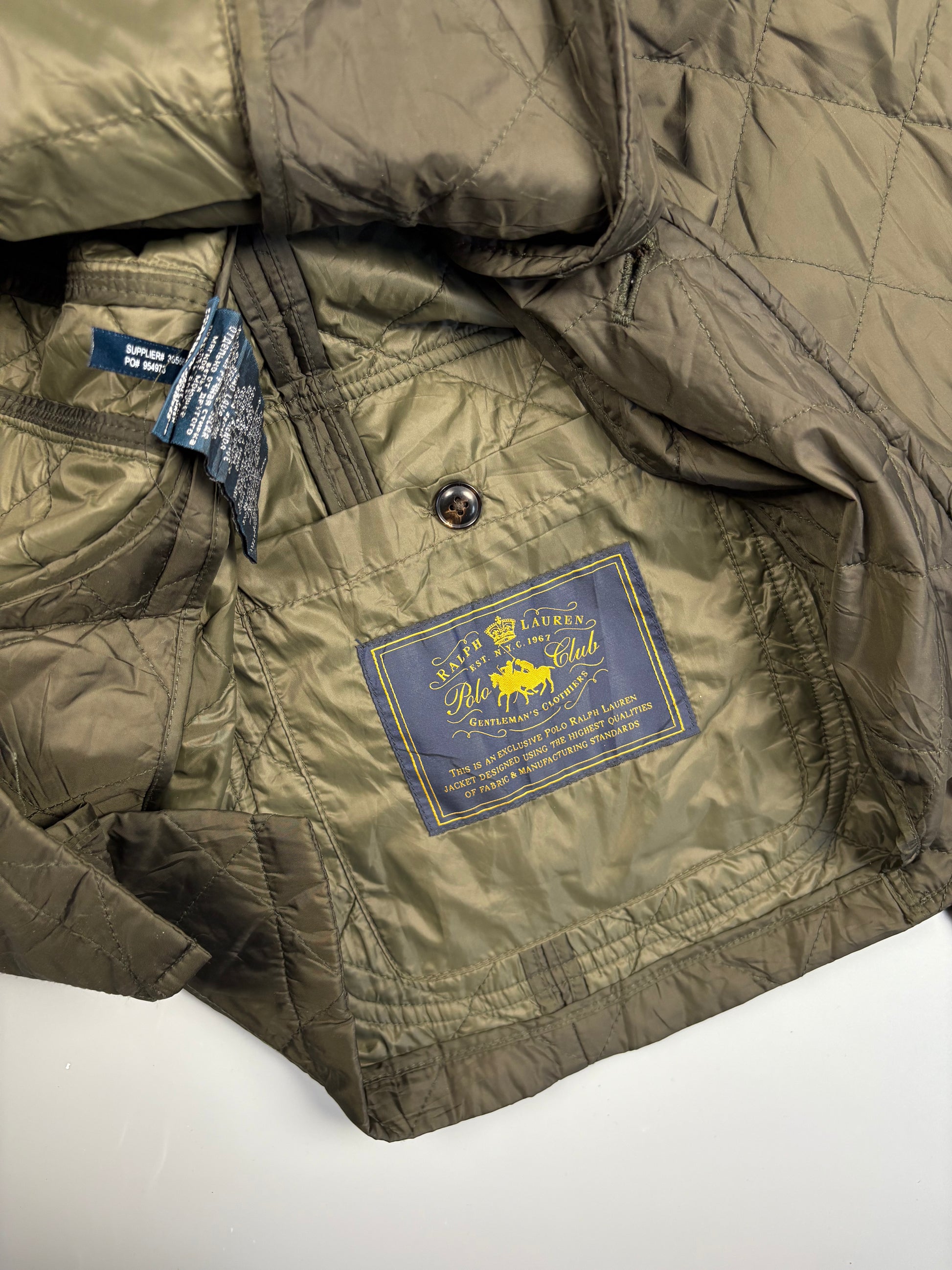 1990s Ralph Lauren Khaki Green Quilted Field Jacket (M)