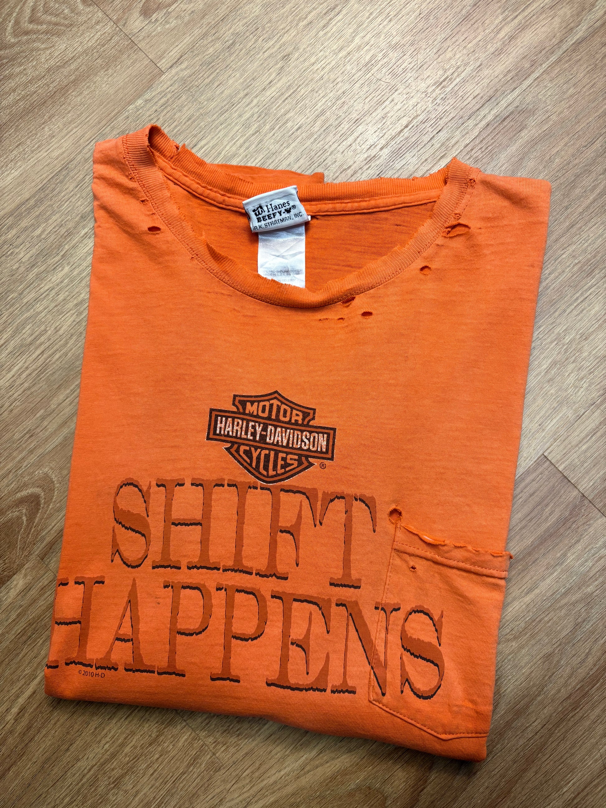 Harley Davidson Vintage Orange Thrashed Pocket Tee (XL)
