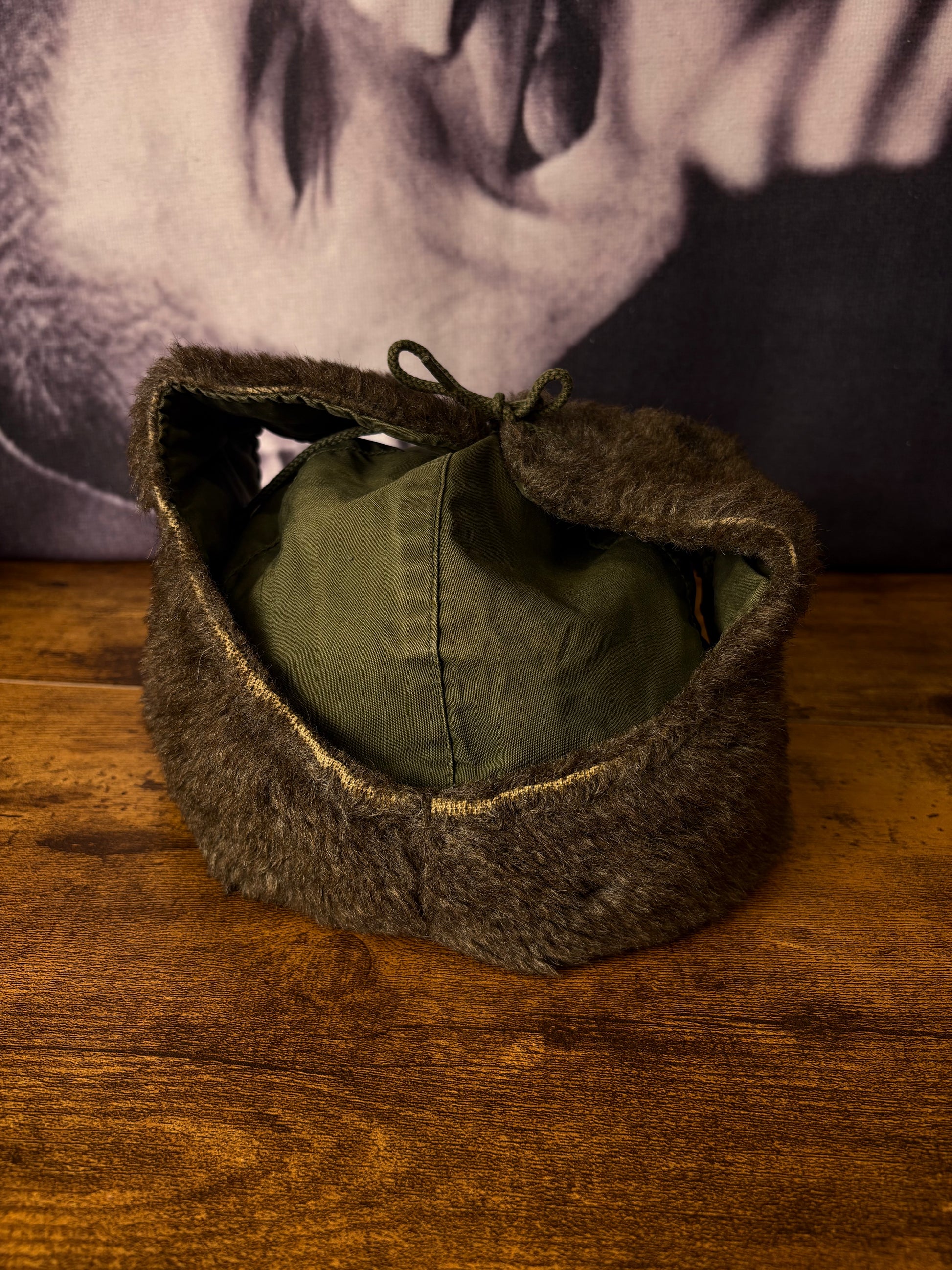 True Vintage 50s Khaki Green Fur Ear Lining Hat