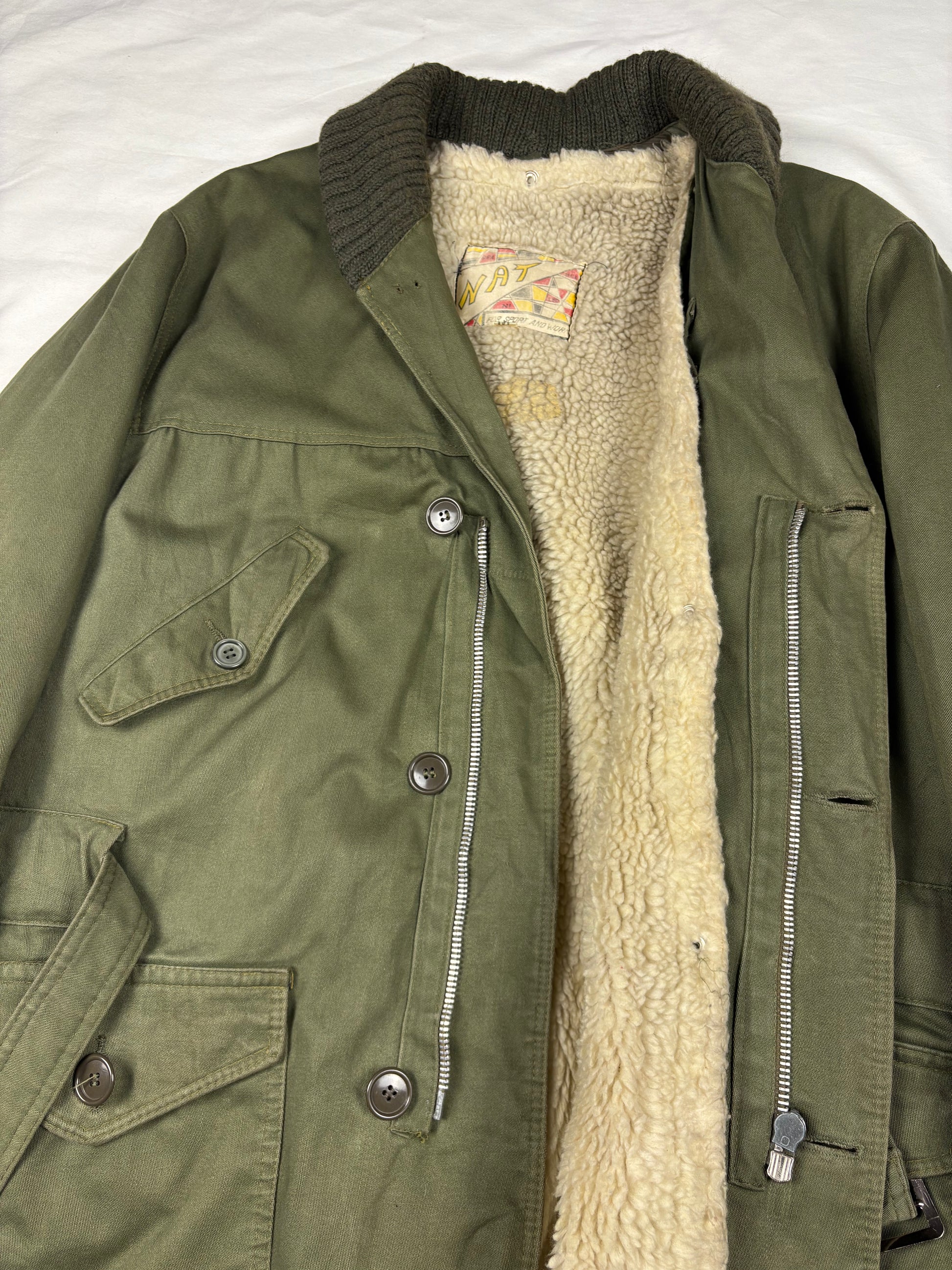 True Vintage 70s Sherling Lined Military Green Overcoat (M)