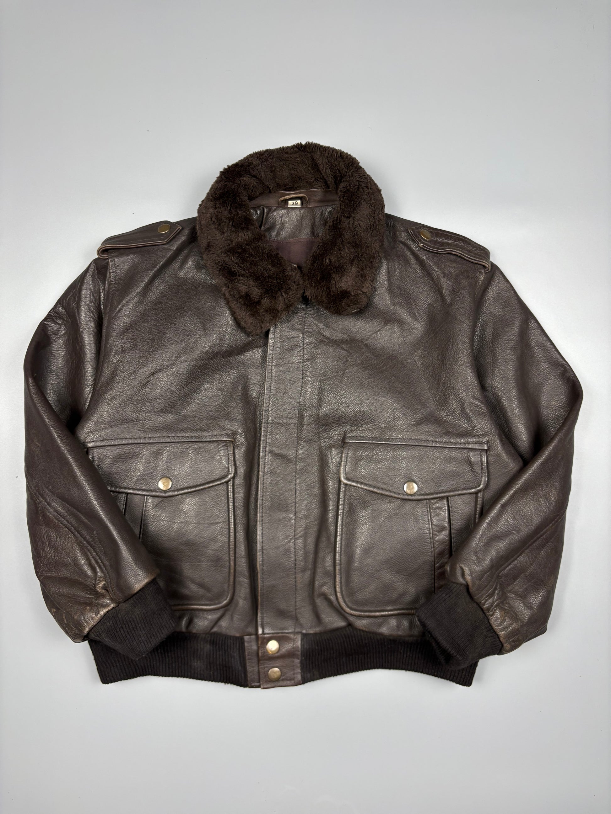 1980s Italian made A-2 flight leather jacket w/ fur collar - in an excellent vintage condition.