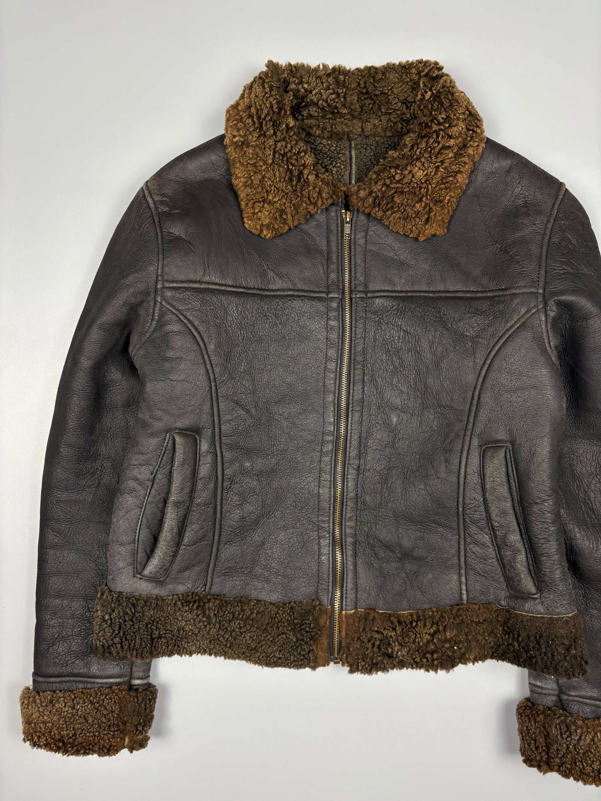 Vintage 1980s Shearling Lined Sheepskin Aviator Leather Jacket (women's M)