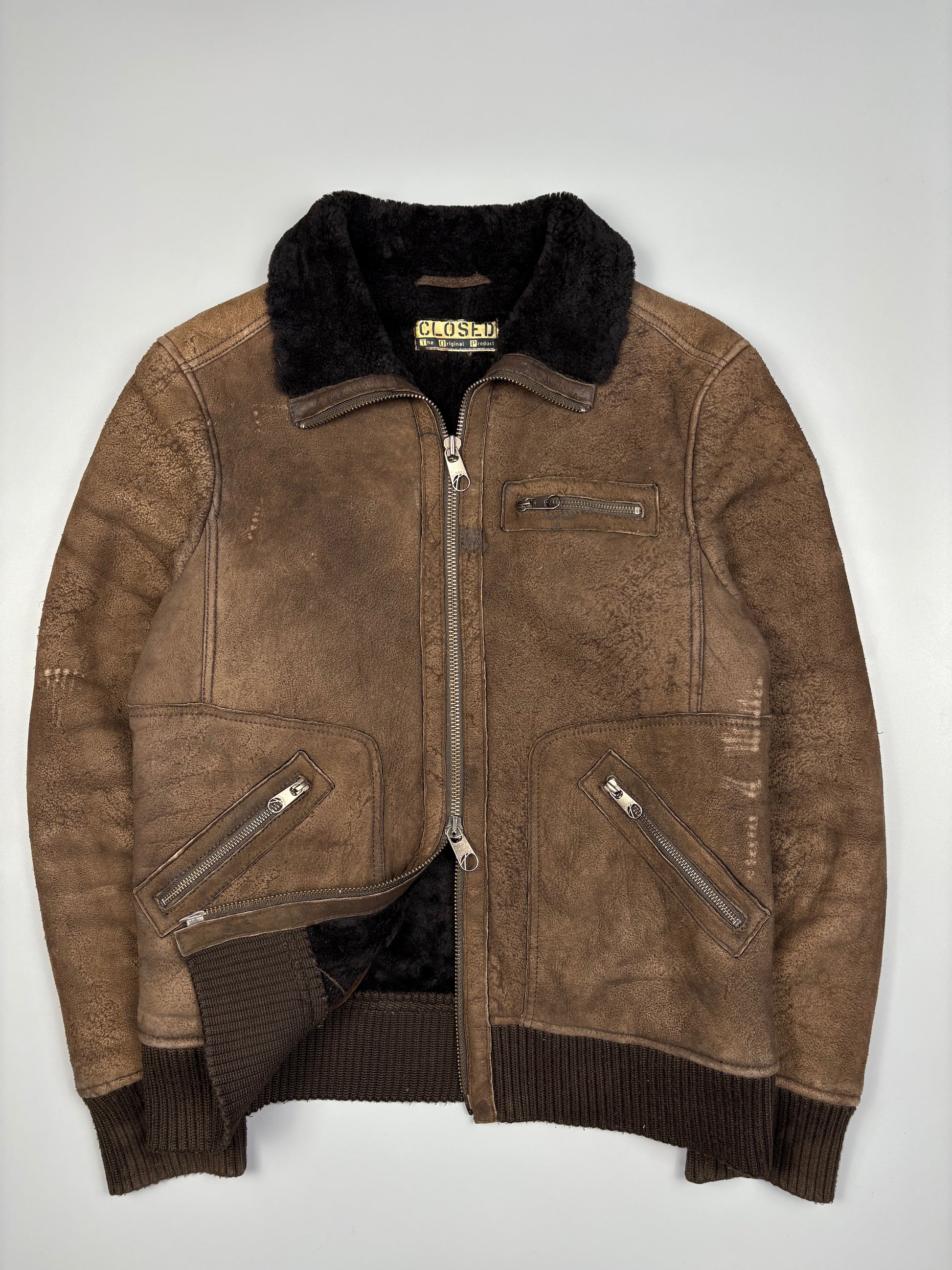 1980s Sheepskin leather jacket, featuring a double zip and fur lining - in a good vintage condition.