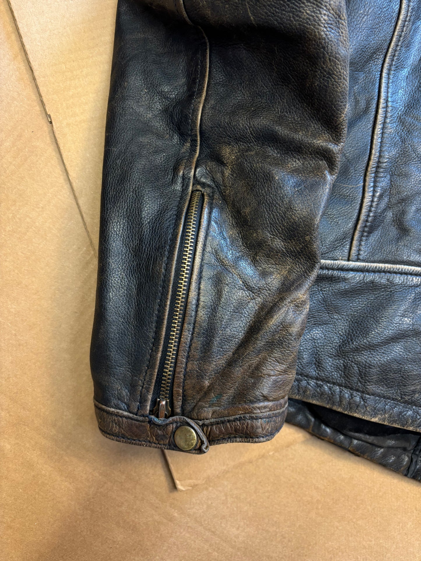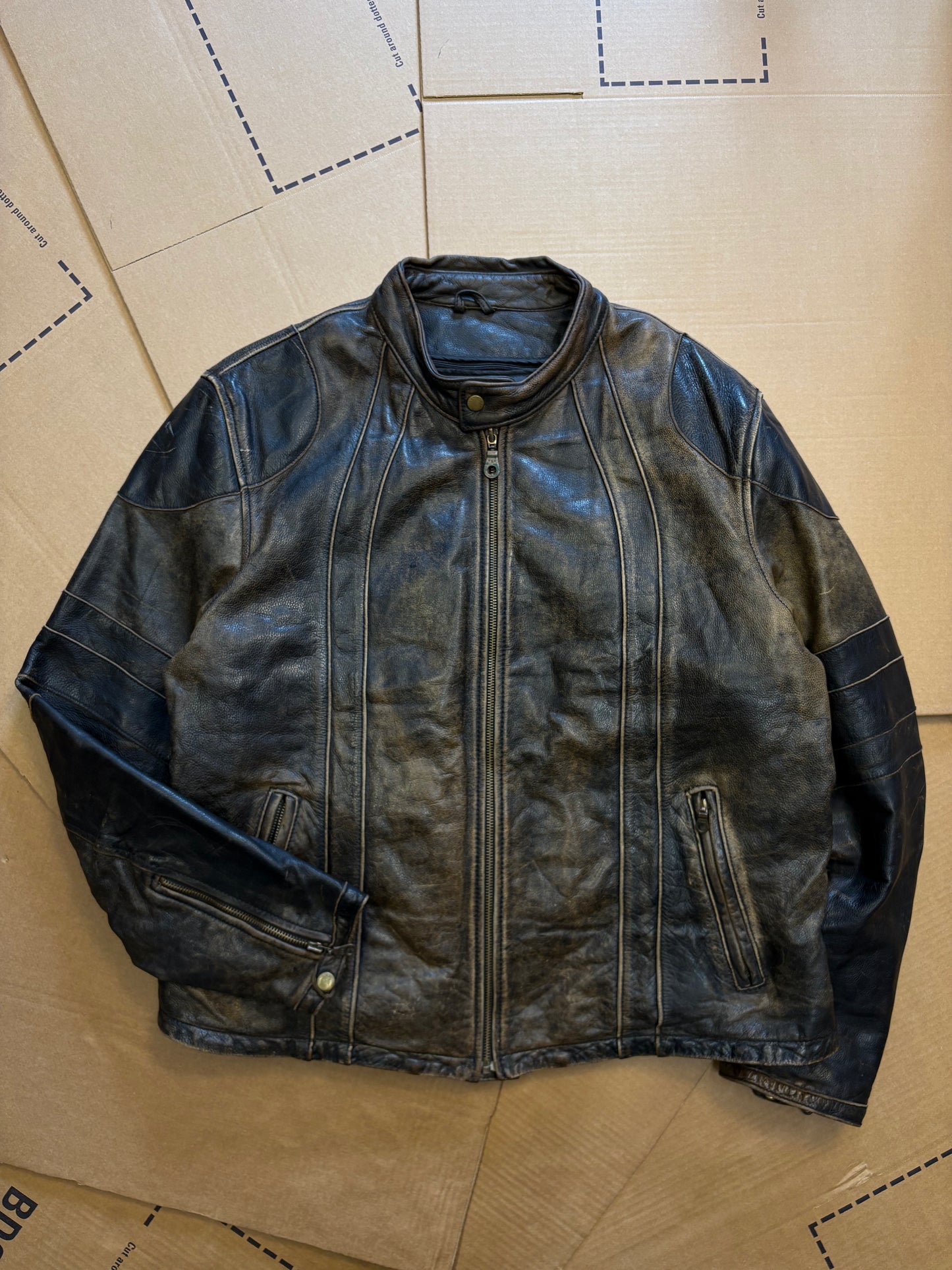 Vintage Italian Brown + Black Biker Leather Jacket (XL)