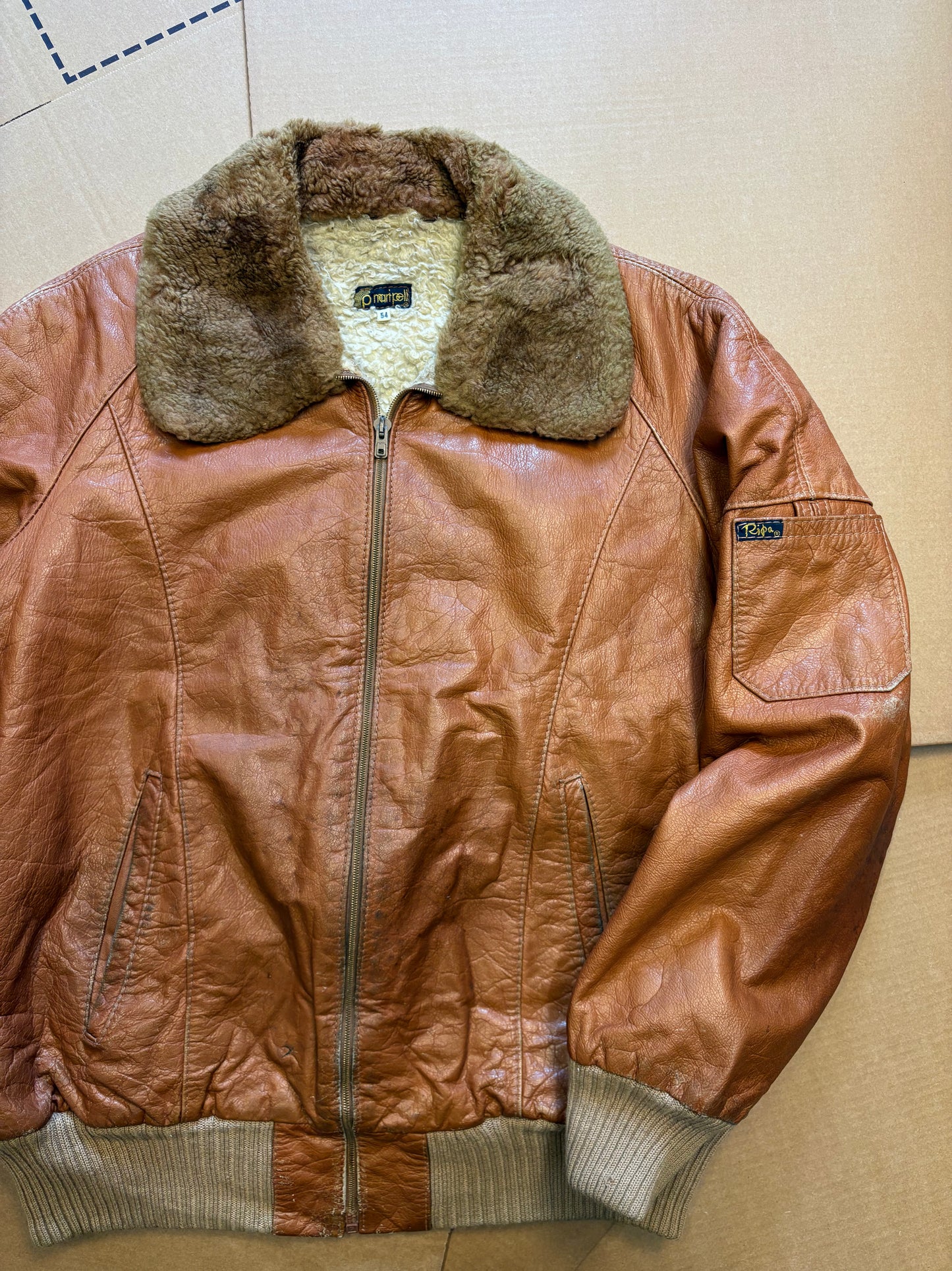 Vintage Sherling Lined Orange Leather Jacket (women's M)